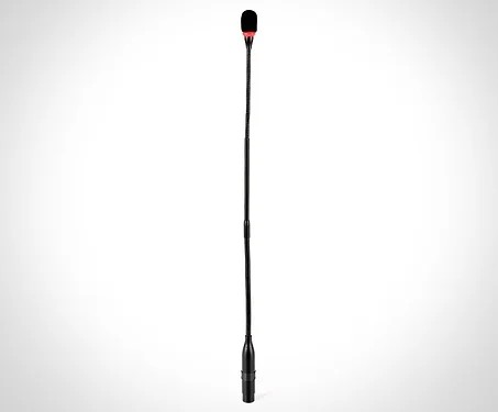 Microfone com haste flexível com cápsula de condensador e saída XLR.